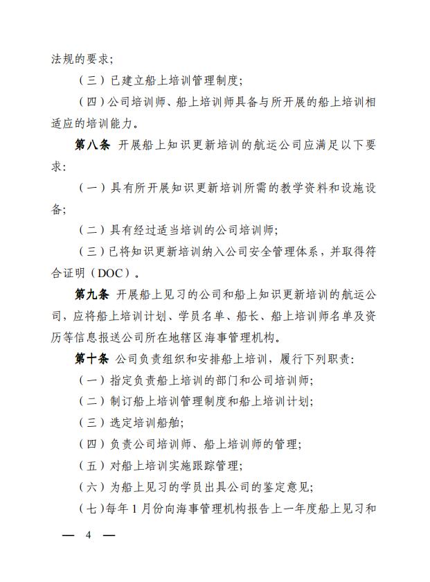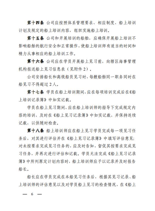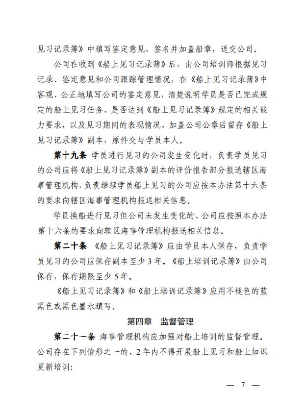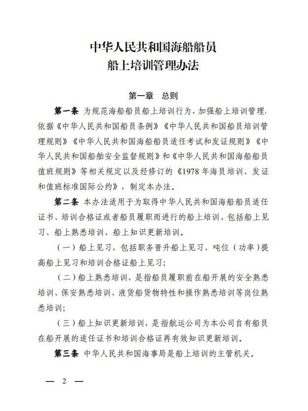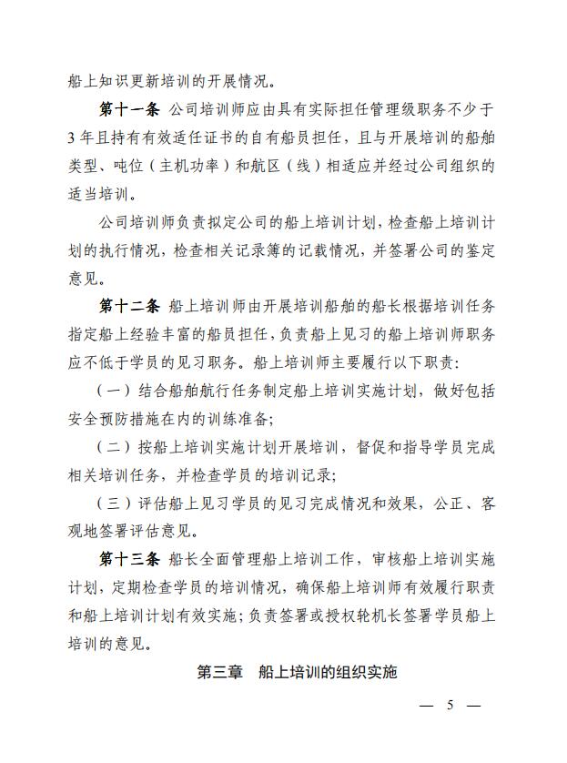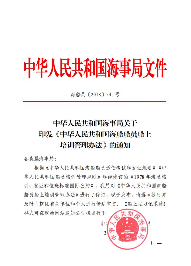 中華人民共和國海事局關于印發(fā)《中華人民共和國海船船員船上培訓管理辦法》的通知